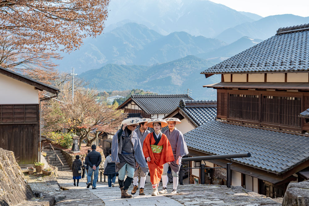 日本の伝統的な旅の着物「旅装束(TABISHOUZOKU)」を着て散策ができるアクティビティ。江戸時代の5つの街道のひとつ「中山道」を歩けば、まるで時代をさかのぼったかのような一日が過ごせます。中津川にある3つの宿場町「中津川宿」「落合宿」「馬籠宿」を巡るのもおすすめです。着物に加えて木製の笠「三度笠(SANDO-GASA)」を身につけることで、江戸時代の旅人の装いを忠実に再現します。歴史と文化に溶け込むようなこの体験は、通常の観光とはひと味違う思い出となるでしょう。