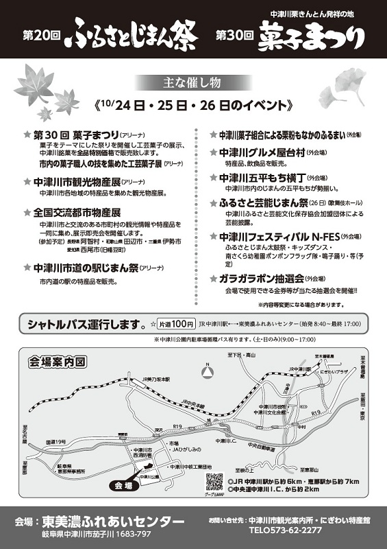 問い合わせ:中津川市観光案内所・にぎわい特産館(TEL: 0573-62-2277)